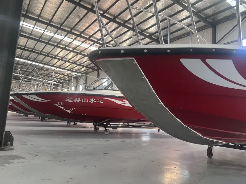 இந்த வேகப் படகுகள் மென்மையான V வடிவ மேலோடு வடிவமைப்பைக் கொண்டுள்ளன, திறந்த கடல் பகுதிகளுக்கு வடிவமைக்கப்பட்ட ஆழமான V- வடிவ படகுகளைப் போலன்றி, இந்த மாற்றியமைக்கப்பட்ட ஆழமற்ற வரைவு அமைப்பு நிலைத்தன்மையைப் பராமரிக்கிறது, அதே நேரத்தில் சூழ்ச்சியையும் வழங்குகிறது, வேகப் படகு ஆழமற்ற கடற்கரைகளில் சுமூகமாக செல்ல உதவுகிறது. BIJIA மலை மலைக் கடலோரப் பகுதியின் வரையறுக்கப்பட்ட நீர் ஆழ நிலைகளில் நம்பகமான செயல்பாட்டை உறுதிசெய்யும் வகையில், ஆழமற்ற நீர்க் கப்பல்களின் பண்புகளுடன் இந்த வடிவமைப்புத் தேர்வு சீரமைக்கப்பட்டுள்ளது.